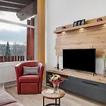 Fewo Lieblingsplatz Mit Indoor Pool erbjuder balkong, samt har utsikt över trädgården. Gästerna i den här lägenheten erbjuds ett badrum med hårtorkar, badlakan och handdukar. Det finns också en dusch.